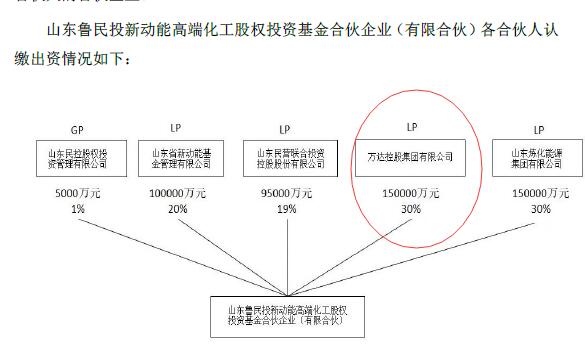 公告显示,金湖投资身后出现万达控股集团身影。目前,金湖投资只有3位股东,山东鲁民投企业管理有限公司、山东民营联合投资控股股份有限公司和山东鲁民投新动能高端化工股权投资基金合伙企业(有限合伙)。出资认缴比例分别为0.01%、20%、79.99%。