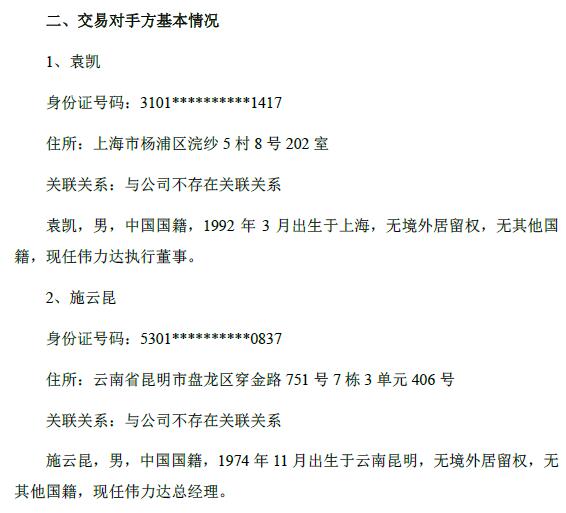伟力达法定代表人袁凯,出生1992年,持有伟力达60%股份,施云昆持有伟力达40%的股份。