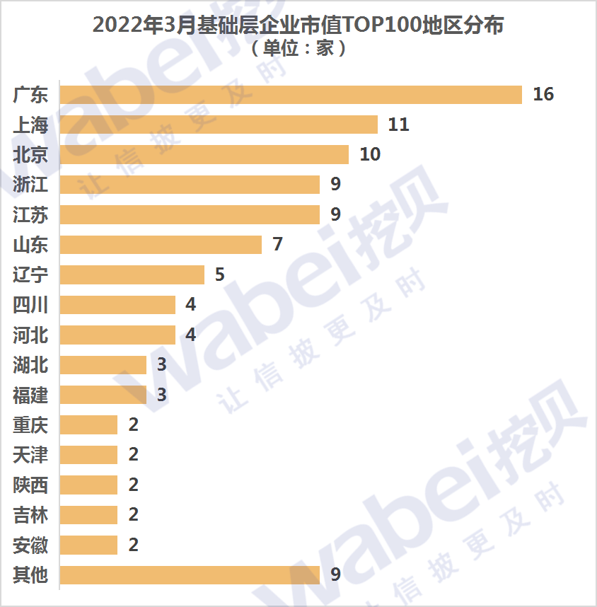 2022年3月基础层企业市值TOP100:16家广东企业上榜数量最多